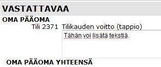 Muokkaa-valinnan ollessa aktiivinen päästään tase-erittelyyn lisäämään tekstitietoja.