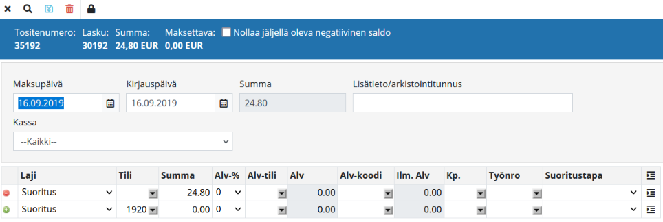 Myyntisuoritus Suoritusten tiliöintivirheet