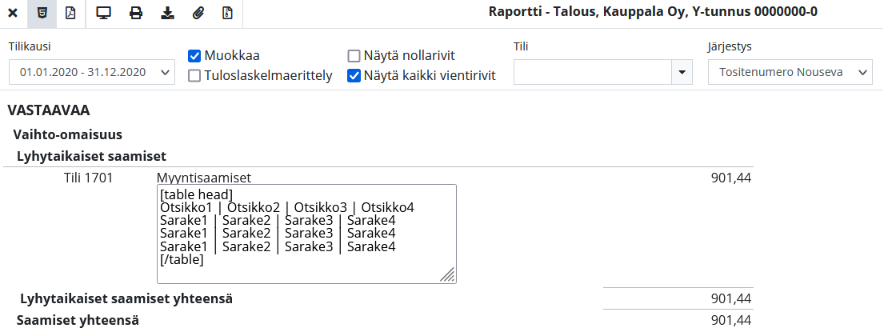 Kirjanpidon raportteja pystytään muokkaamaan dokumentti- , kaavastot- ja tilinpäätöseditoreilla.