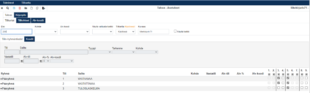 Siirrytään uudessa istunnossa Asetukset > Sovellusasetukset > Talous > Tilikartat välilehti