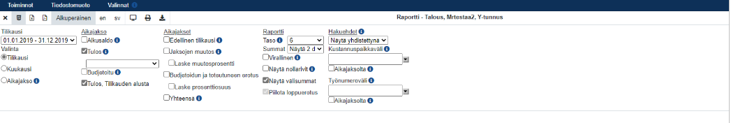 Ajetaan raportti alla olevan kuvan mukaisilla ajovalinnoilla.