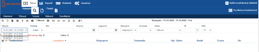 Valitaan oikea tilikausi Tilikausi-valikosta