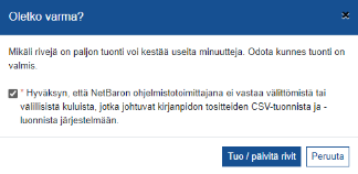 Vahvistetaan tuonti napsauttamalla Tuo / Päivitä rivit -painiketta.