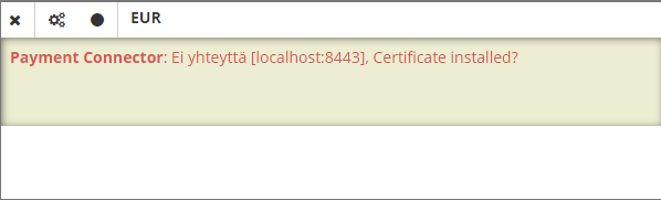 Virheilmoitus: Payment Connector: Ei yhteyttä [localhost:8443], Certificate installed?