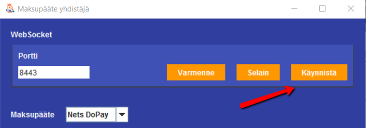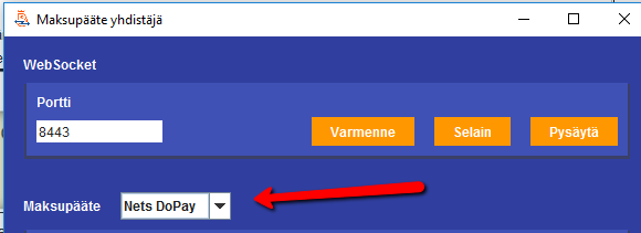 Varmista, että valittuna on oikea maksupääte (esimerkiksi Nets tai Verifone).