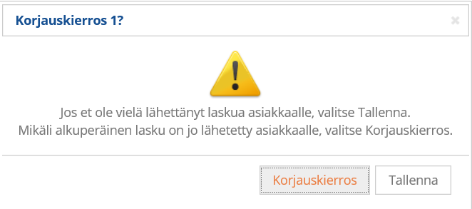 Avaa korjattava lasku ja tee siihen tarvittavat muutokset. Kun tallennat korjaukset, järjestelmä pyytää vahvistuksen.