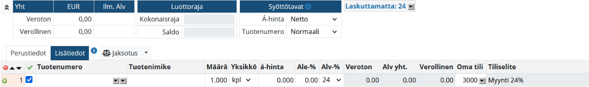 Etsi-näkymässä valittaessa Tila-pudotusvalikosta Laskuttamatta, näytetään Määrä-sarakkeen tieto verollisena.