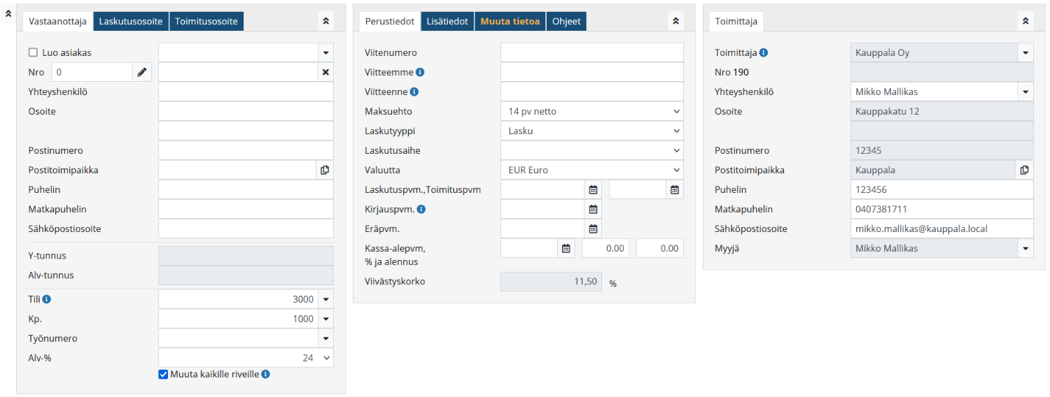 Alla olevassa taulukossa on kerrottu mikä kenttä Prospekti-järjestelmässä vastaa sovellusperheen kenttää laskun perustiedoissa.