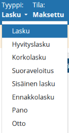 Avatulla laskulla tyyppiä voi vaihtaa valitsemalla sen Tyyppi-pudotusvalikosta.