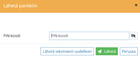 Maksuaineistojen pankkiin lähetyksessä on organisaatiokohtainen asetus, jolla voidaan ottaa käyttöön maksuaineistojen lähetykseen varmistus matkapuhelimeen lähetettävällä PIN-koodilla.