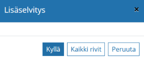 Tarkastettaessa tai hyväksyttäessä riviä kysytään halutaanko tehdä toiminto kaikille riveille.