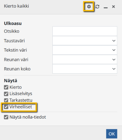 Otetaan käyttöön muokattavalla tehtävälistalla Talous > Ostolasku > Kierto kaikki -kortin asetuksista Virheelliset-valinta, jolloin laskut, joita ei ole voitu automatiikalla lähettää kiertoon, tulevat käyttäjien tietoon.