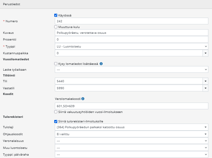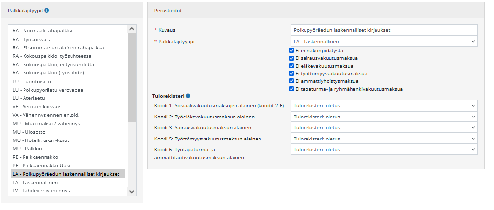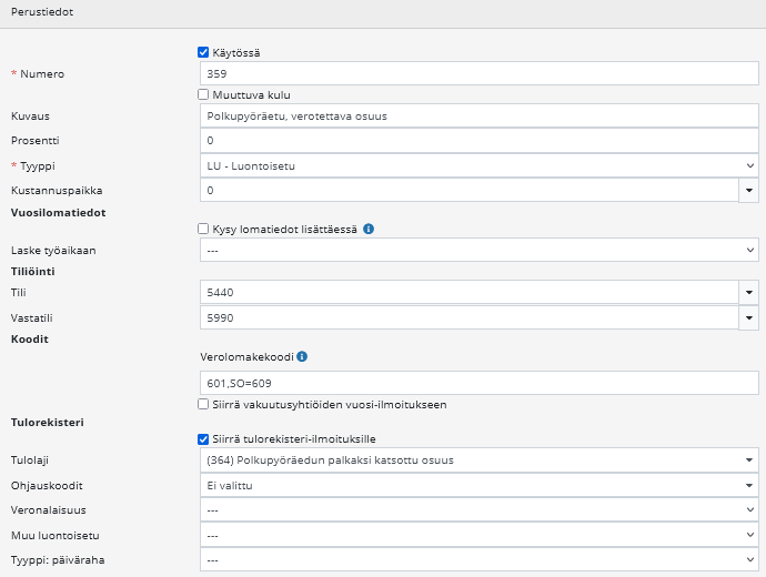 Tällä palkkalajilla kirjataan polkupyörä edun verotettava osuus ja ja saadaan tuotua se myös tulorekisteri-ilmoitukselle.