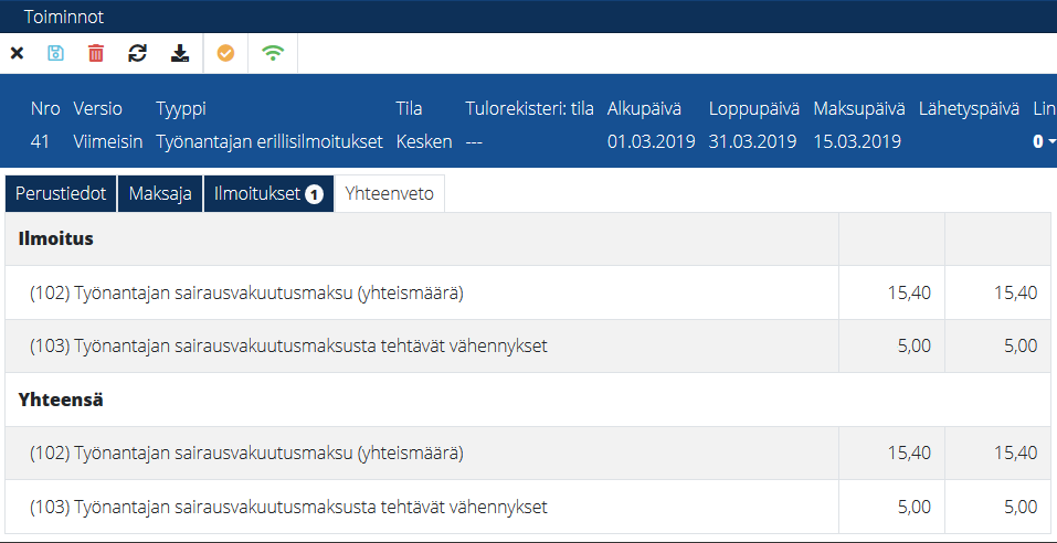 Työnantajan erillisilmoitus - Maksetut sairausvakuutusmaksut