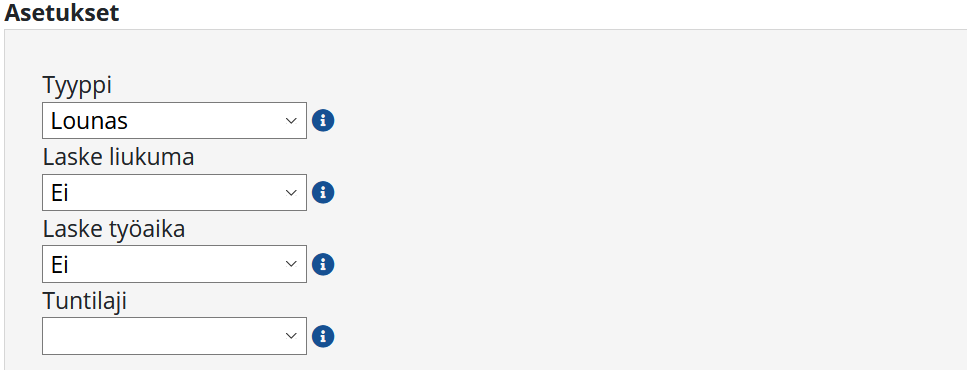 Lounas tyyppiä käytetään, mikäli halutaan laskea erikseen lounaalla käytetty aika.
