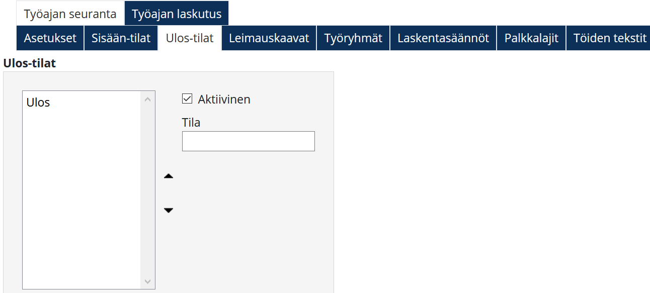 Tilan näkyminen leimauksessa edellyttää, että tilalla on Aktiivinen -valinta.