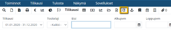 Jos parhaillaan muokattavana olevalle kirjanpidonviennille on annettu tilinumero, tulee tämä tilinumero automaattisesti hakuehdoksi Tili-kenttään.