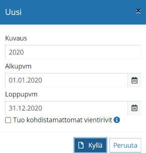 Kun valinta on päällä, tuodaan tase-erittelyille myös sellaiset kirjanpidon vientirivit, joita ei ole kohdistettu Erittelykohteille.