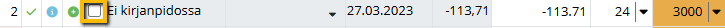 Kun tositenumero on poimittu riville tulee automaattisesti tositenumerokentän vasemmalle puolelle valinta päälle.