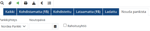 Noutopäivän voi jättää myös tyhjäksi, jolloin vain noutamattomat viiteaineistot haetaan kun napsautetaan Nouda pankista -painiketta.