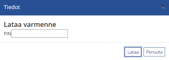 Avautuvassa ikkunassa syötetään latausvaiheessa tallennettu PIN-koodi ja Lisää tiedosto -painikeen kautta poimitaan koneelta tallennettu varmennetiedosto.