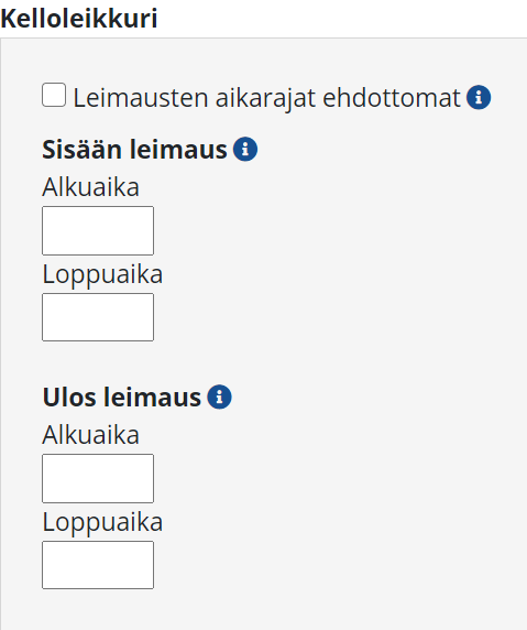 Kelloleikkurilla voidaan määrittää aikarajat joiden puitteissa leimaus on mahdollista tehdä.
