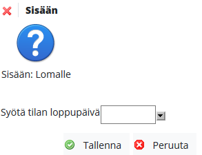 Lomalle lähettäessä kirjaudutaan määritellyllä lomalle lähtötilalla lomalle ja annetaan arvioitu loman päättymispäivä (ts. viimeinen lomapäivä).
