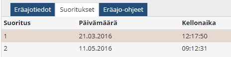 Suoritukset-välilehdelle listataan tiedot suoritetuista eristä.