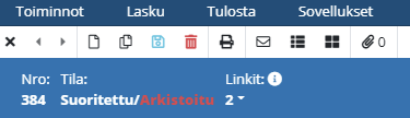 Eräajolasku voidaan arkistoida valitsemalla Lasku > Arkistoi.