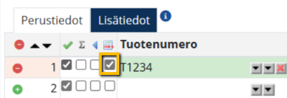Mikäli tehdään muutoksia, kun valinta ei ole aktiivisena, tehdään muutos vain uudelle riville.