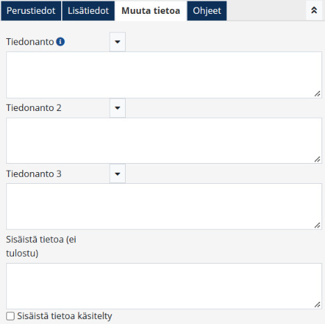 Tiedonantokenttiin voidaan poimia asetuksista luotu tiedonanto. Tiedonantoa voi muokata laskukohtaisesti.