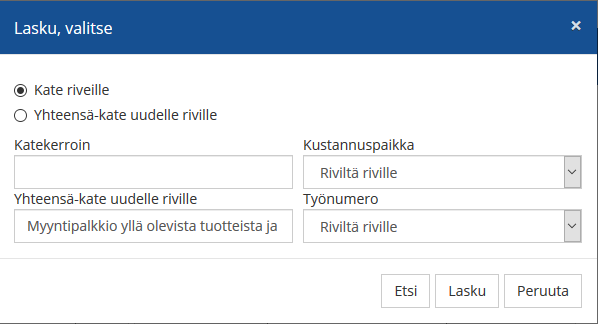Myyntilasku | Ei tee uutta, siirtyy Etsi-näkymään |